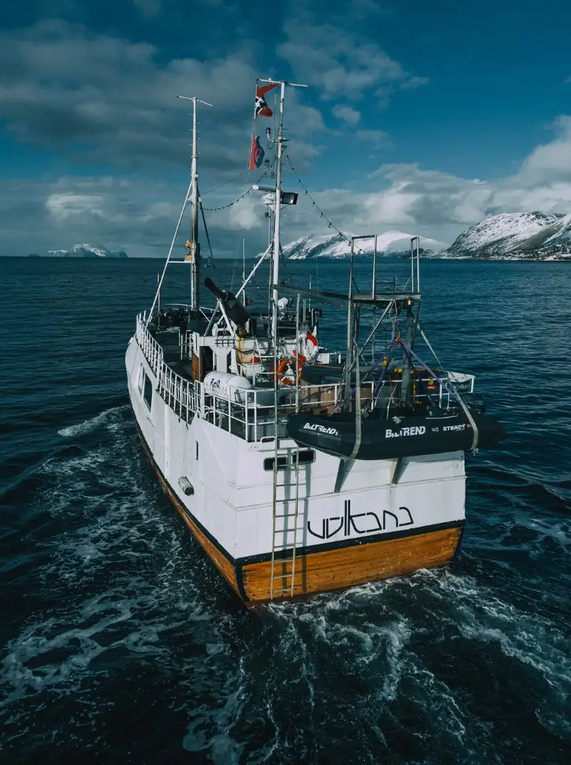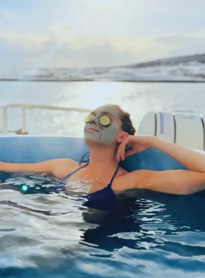 Soft light on the water, snow-covered mountains, silence broken only by the sound of the boat. The Daylight Spa Cruise is an invitation to slow down, warm up and fully experience the contrast between heat and cold, comfort and raw nature.